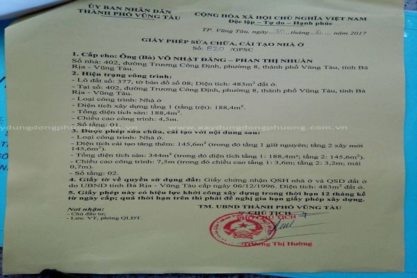 Nhận làm hồ sơ xin phép xây dựng TP Vũng Tàu